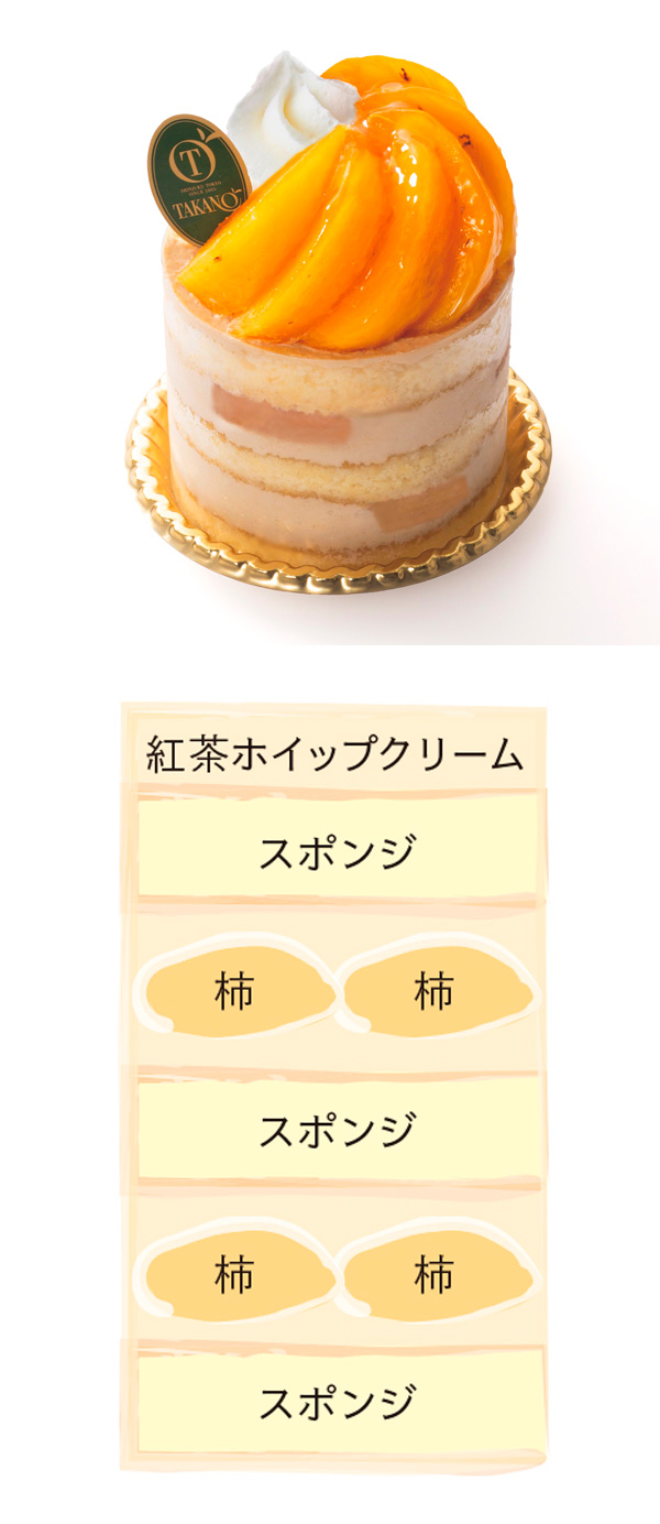 紅茶風味のホイップクリームと柿で仕立て季節のショートケーキ。