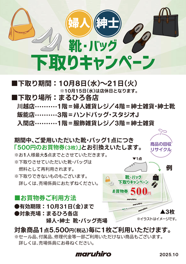 ●2025年10月8日(水)~2025年10月21日(火)まで ※10月15日(水)は店休日となります。 開催店舗: 川越店 . 飯能店