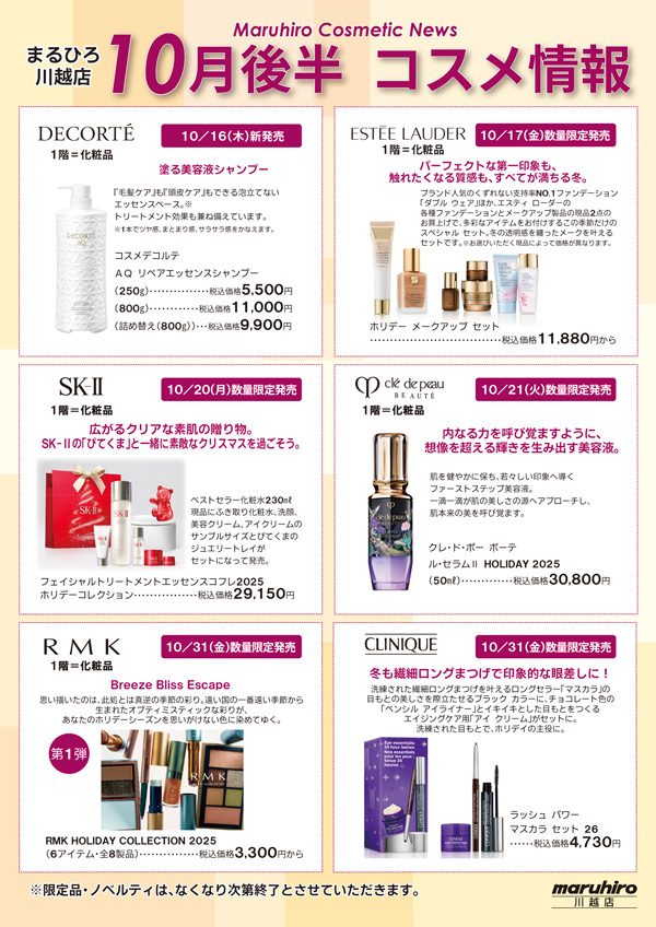 ●2025年10月8日(水)~2025年10月21日(火)まで ●1階=化粧品 開催店舗: 川越店
