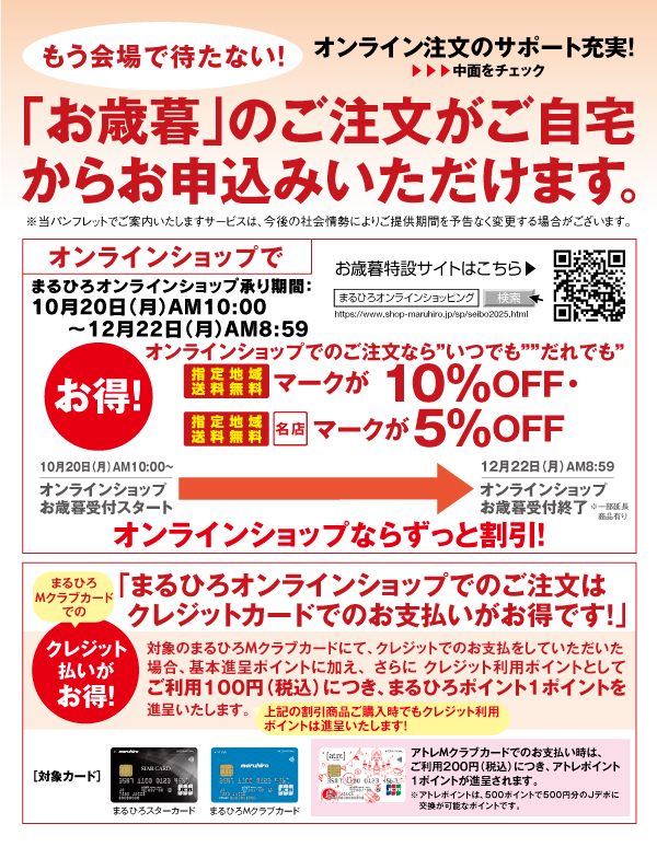 「2025 まるひろのお歳暮」彩の国から冬の贈り物。10/20からオンラインショップにて承りスタート。来店せずにお得にご注文できます。