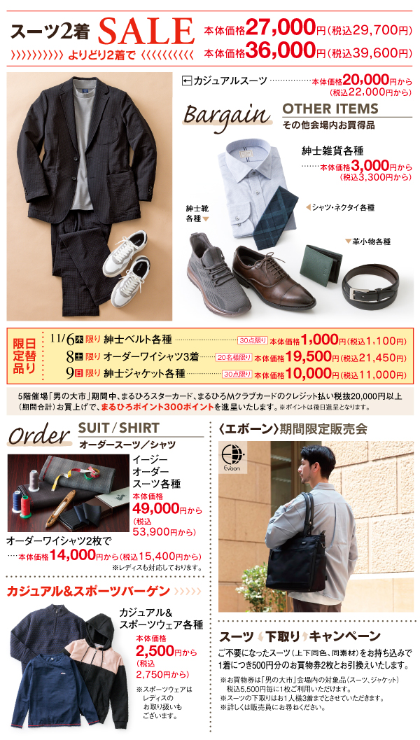 ※お買物券は「男の大市」会場内の対象品(スーツ・ジャケット)税込5,500円毎に1枚ご利用いただけます。