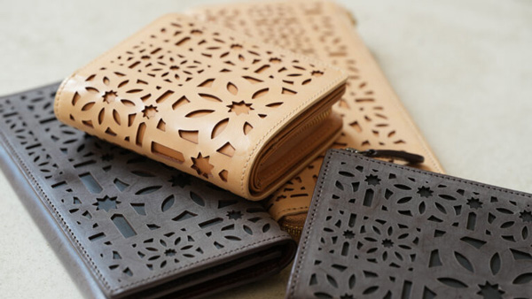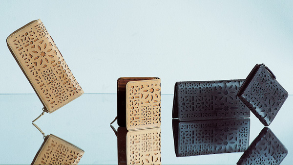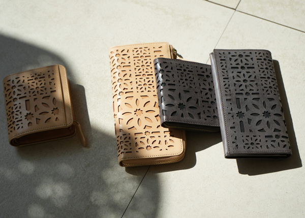 gentenのアイコンのカットワークをレーザーカットで精巧に抜いた、マルチカットワークのお財布シリーズ。
