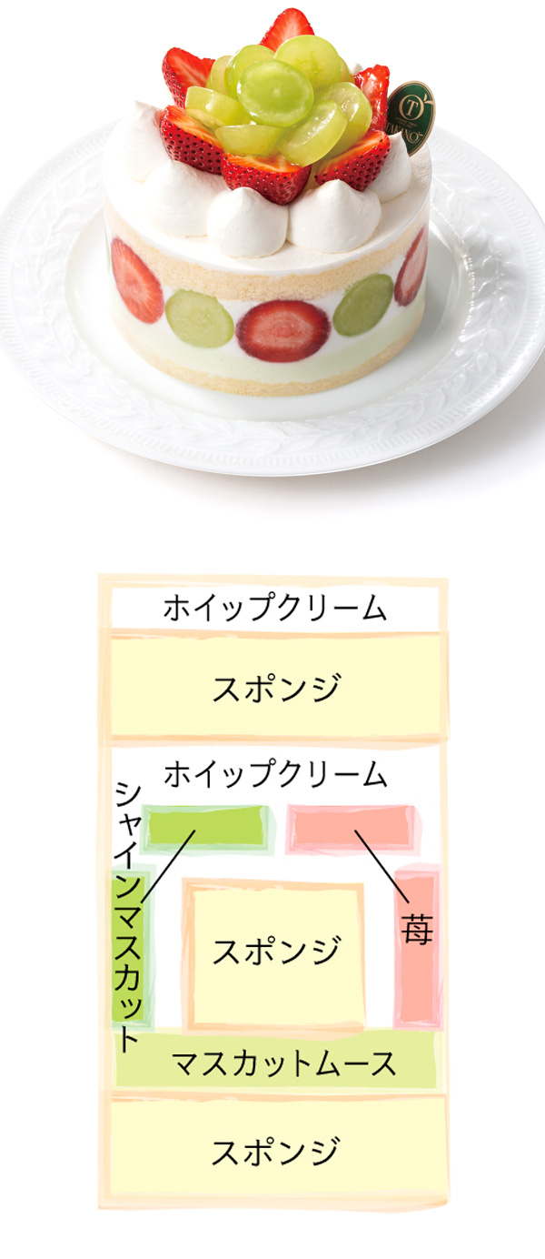 苺とシャインマスカットで仕立てた季節のデコレーションケーキ。