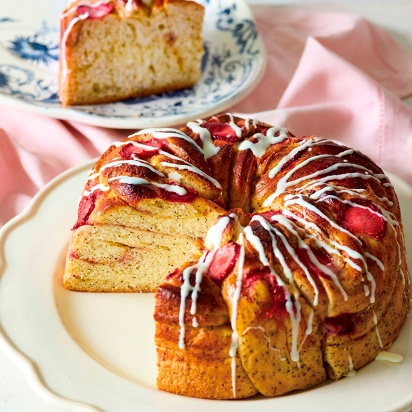 クレームダマンドと苺、ジャムを巻き込んだスイートブレッド。苺とホワイトチョコをトッピング。
