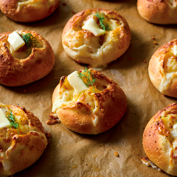 きたあかりと3種のチーズを合わせ「カルピス(株)バター」をトッピング。温めて溶かしバターとジャガイモの相性をお楽しみください。
