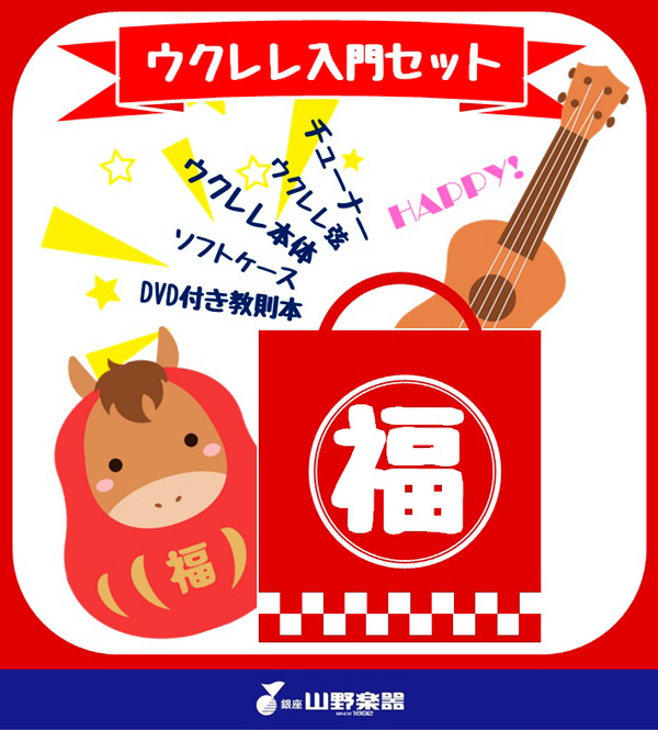 セット内容:ウクレレ本体、ソプラノウクレレ、ソフトケース、DVD付き教則本、チューナー、弦)
