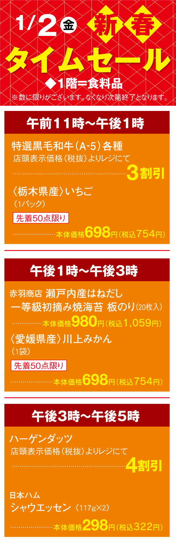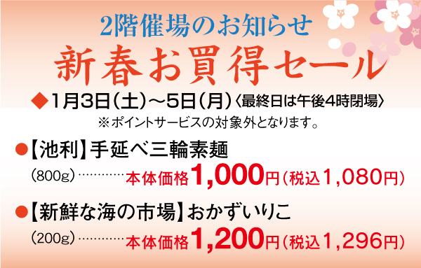 ●2026年1月2日(金)~2026年1月5日(月)まで ●1階=食料品 開催店舗: 飯能店