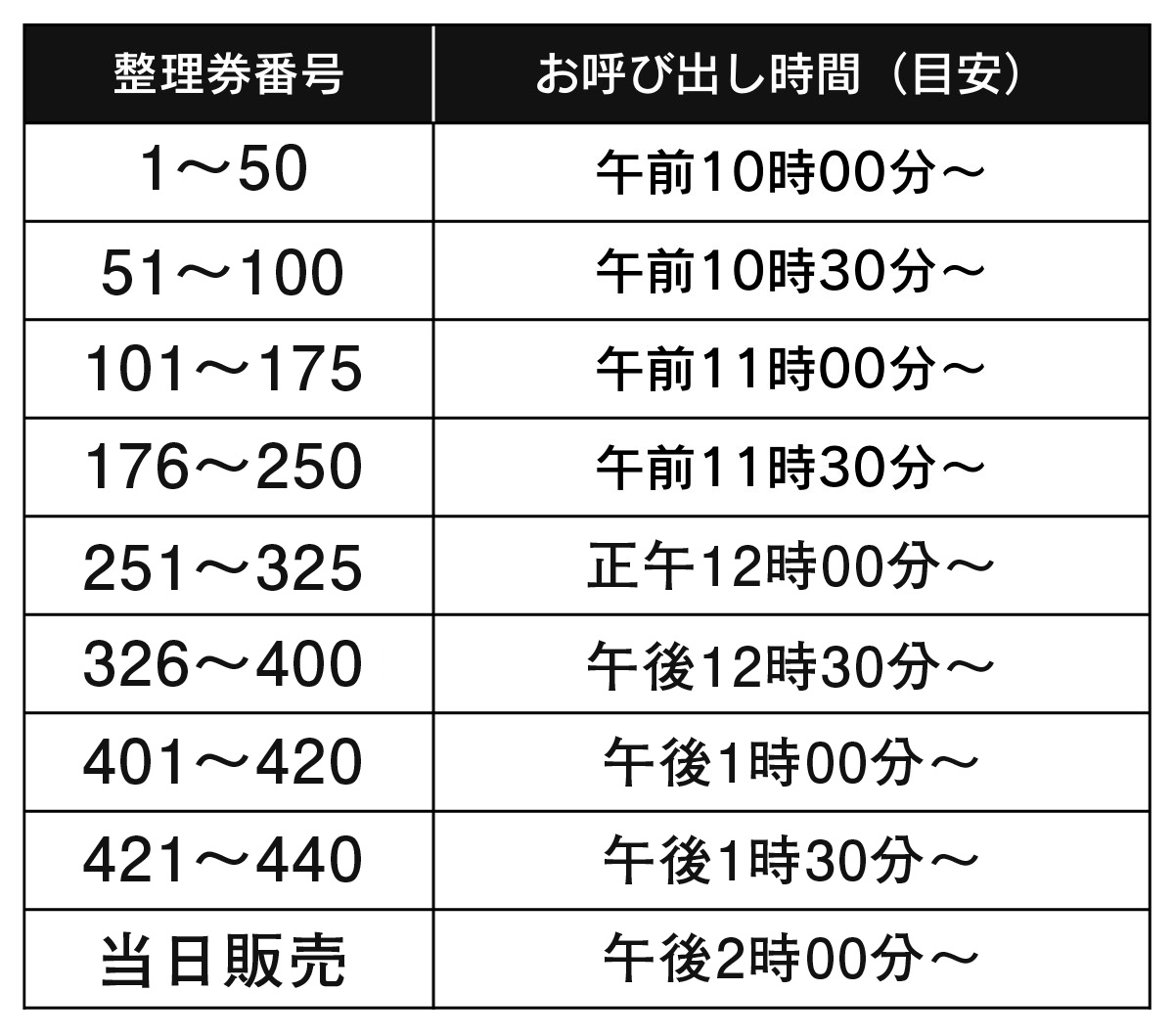 ■整理券は当日午後2時までにお越しいただけない場合はキャンセル扱いとさせていただきます。