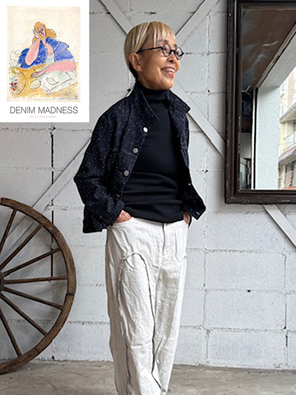 使用生地はクロキ社(岡山井原産)遠州織物(静岡産)など心地よい、永く愛される生地を使用しています。エイジレスでユニセックスデニムマッドネスのアイテムは自由を感じさせもう一度洋服を好きになってもらいたいとの思い出で日々作成しています。