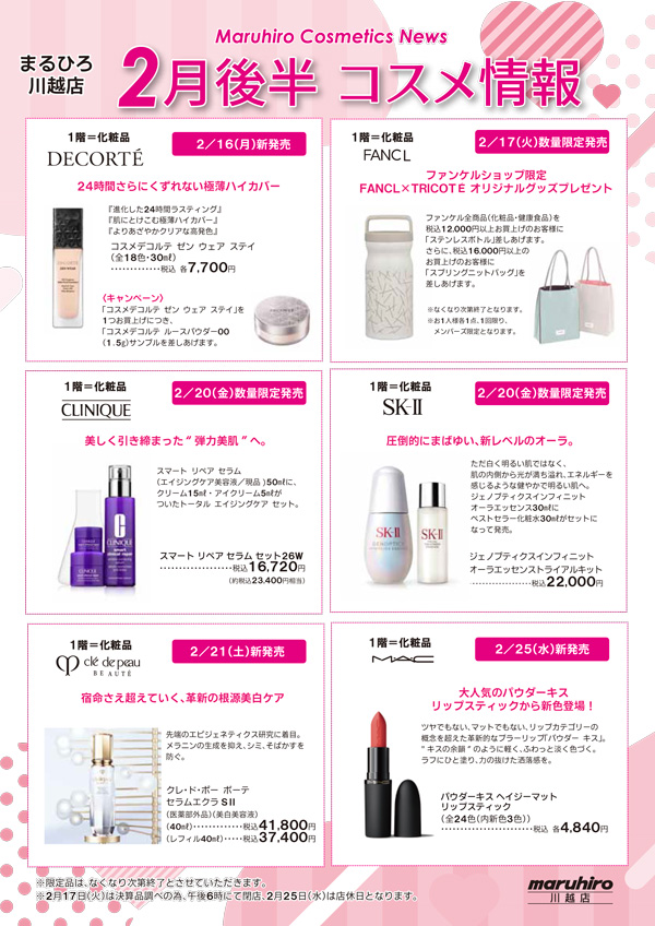●2026年2月28日(土)まで ●1階=化粧品 開催店舗: 川越店