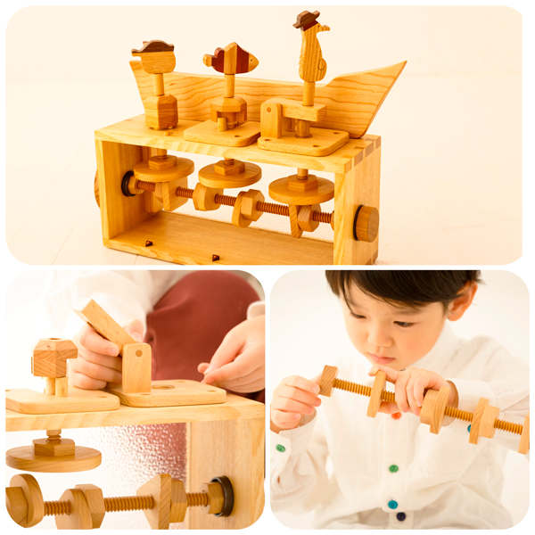 元機械設計士が贈る、0歳からのエンジニアリング知育。木の温もりに触れ合いながら、理系脳やプログラミング的思考の土台を育む、本格エンジニアリング知育です。