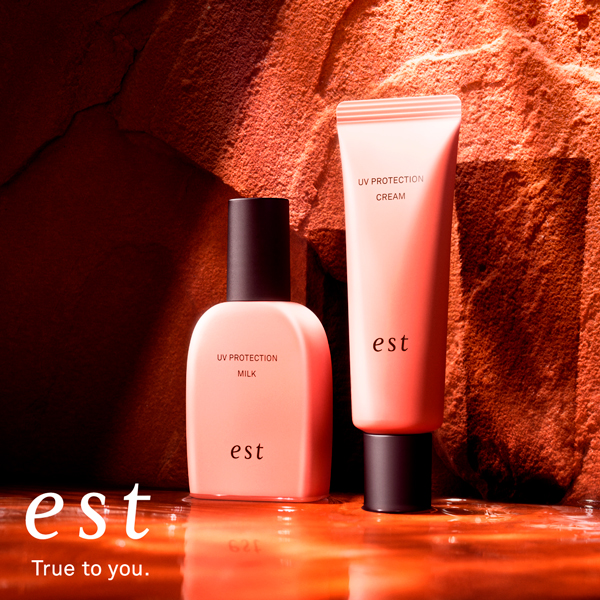 estの新・砂漠スキンケアから、UVが誕生。紫外線により、乾燥時の角層の収縮が加速するという事実に着目。紫外線の抜け道をミクロレベルで防ぎながら、つけている間中肌をケアし続け、日中も潤いが溢れ出るような、なめらかなハリ肌へ。
