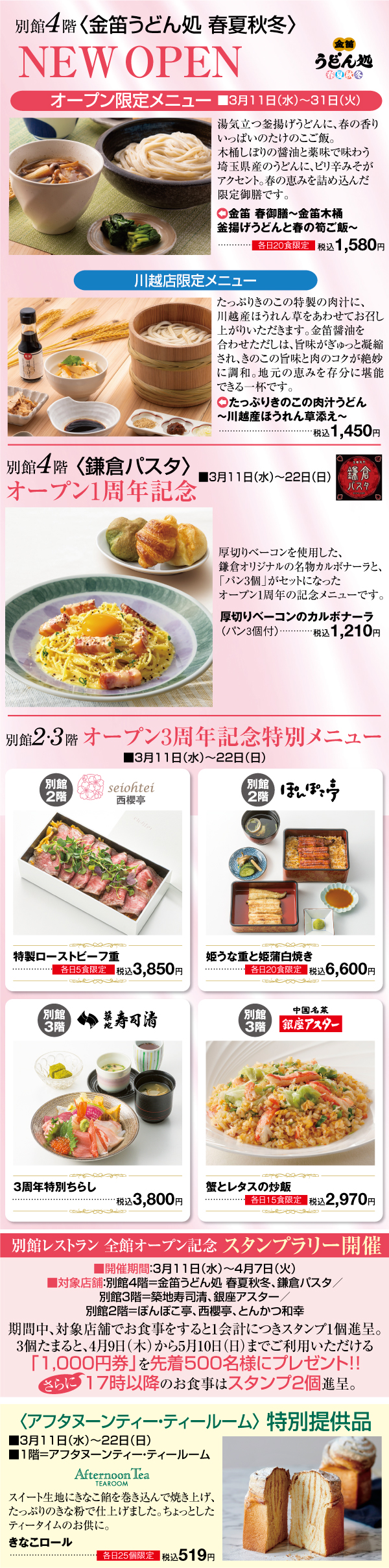 ●地階=味の銘店街・おかずの市場・エンジョイ ダイニング/別館1階=新宿高野・タカノフルーツパーラー/別館2・3・4階=レストラン 開催店舗: 川越店