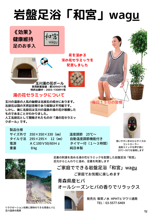 足裏のツボに玉川温泉の湯の花セラミックを配置した岩盤足浴「和宮」。足元から体の芯までじんわりと温めてくれるので、春先の冷えにもオススメです!