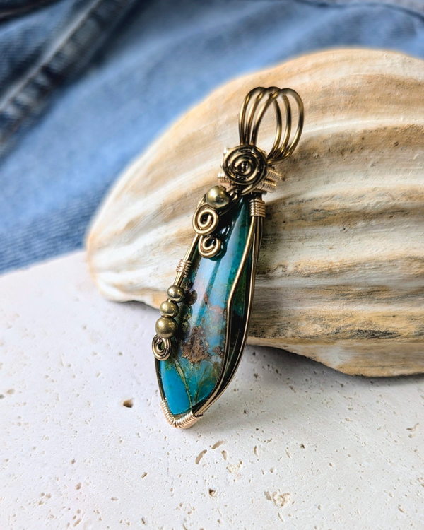 「クリソコラカルセドニー」ワイヤリングペンダントトップ....本体価格43,000円(税込47,300円)