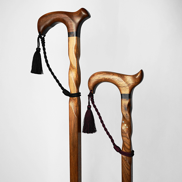 銘木の上質な部位を厳選し、全製作工程を一本一本手仕事で行っている〈工房樹杢〉。天然木ならではの持ち心地で利便性も兼ね備えた、上質感あふれる工芸ステッキをご紹介いたします。