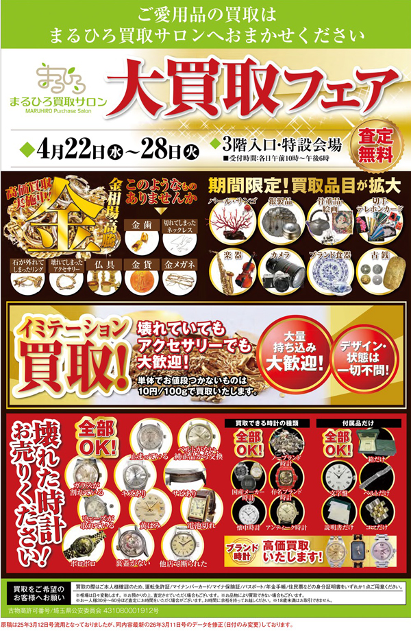 通常お買取り品のダイヤモンド、ジュエリー、ブランド時計、ブランドバッグから期間限定で買買取りアイテムを拡大致します。(切手、テレフォンカード、カメラ、楽器、古銭等)気になるものがあればお気軽にご相談お待ちしております。