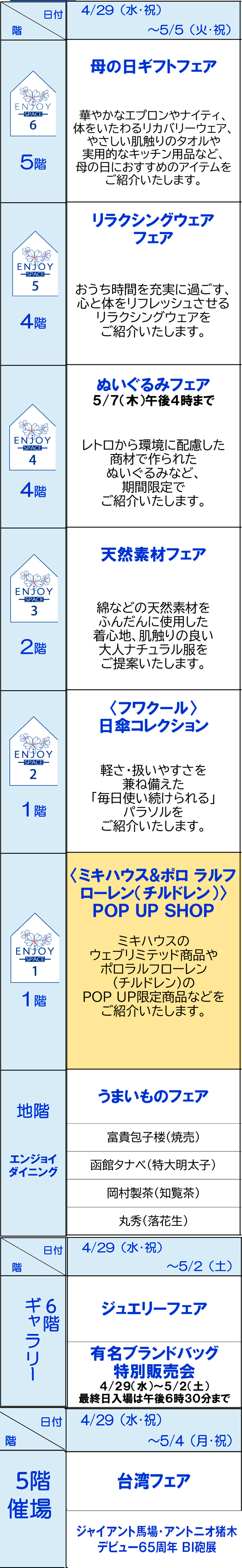 ●2026年4月29日(水・祝)から 開催店舗: 川越店