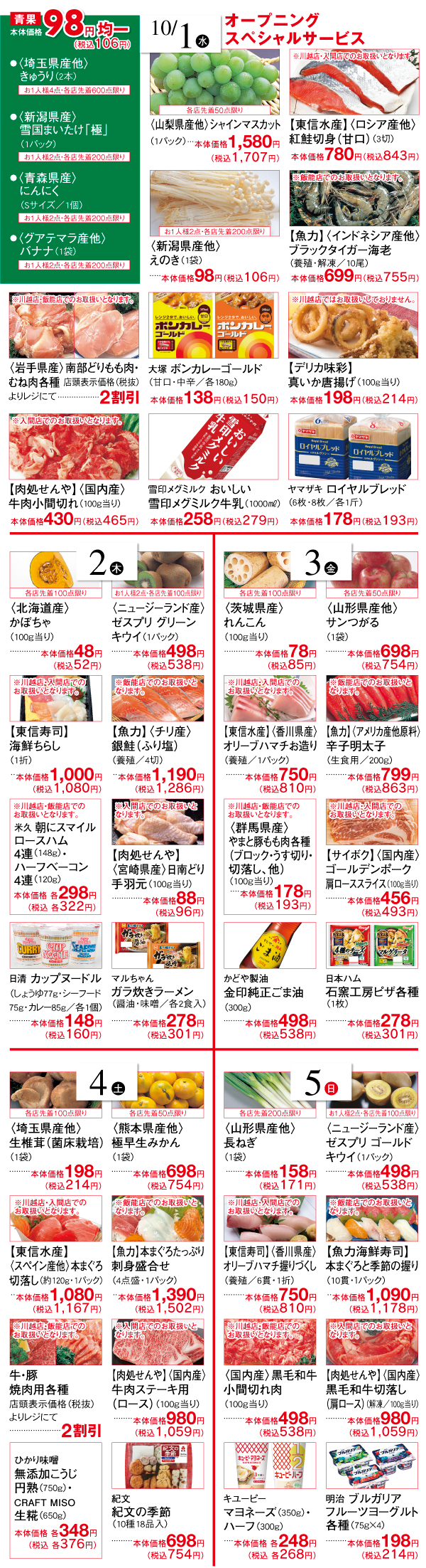 ●2025年10月1日(水)~2025年10月5日(日)まで●食料品