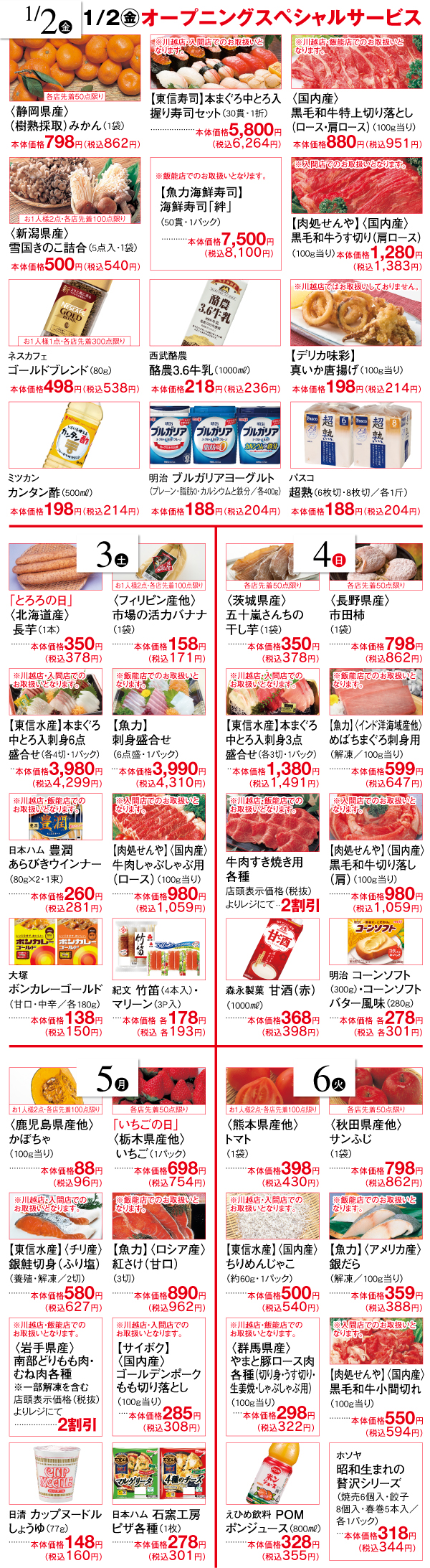 ●2026年1月2日(金)~2026年1月6日(火)まで●食料品