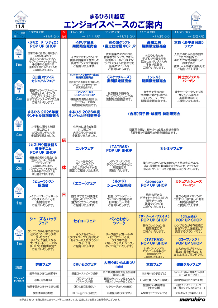 川越店各階催し物のご案内 イベント一覧はこちらから