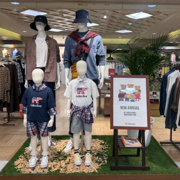 「出かけよう 家族とこの服と」ゴールデンベアは、 お客様にとって家族のようにずっと寄り添い、着るほどに愛着が深くなっていく服を目指しています。