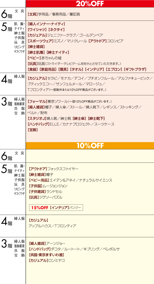 ※一部割引率が異なる商品および売場がございます。また割引対象外の商品および売場もございますのでご容赦くださいませ。