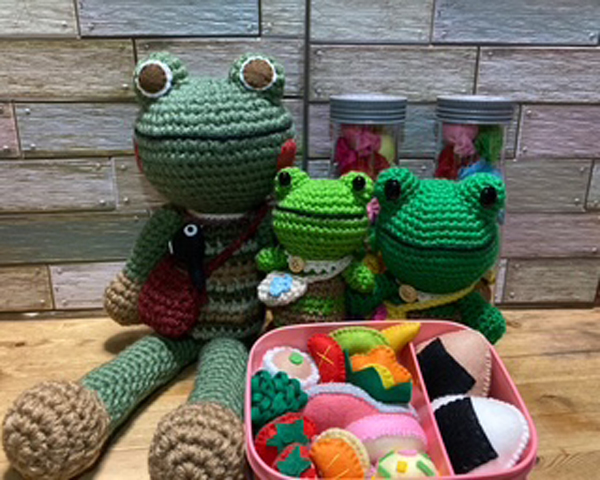 地元4人の作家が、かえるのぬいぐるみやアクセサリー、カントリー雑貨等温かみのある作品を紹介いたします。