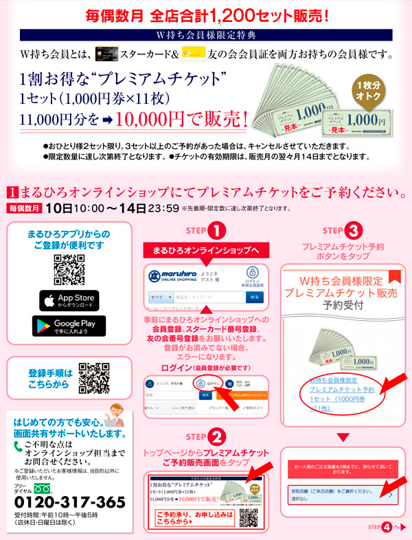 ご予約には事前のオンラインショップ会員、スターカード番号、友の会カード番号の