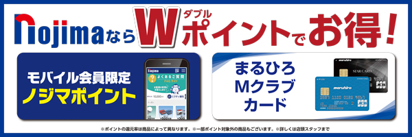 ぜひこの機会にお買い替えをご検討ください。 さらに、エアコンやテレビ・冷蔵庫・洗濯機などをまとめてご購入の場合、最大10万円引きでダブルでおトク!さらに当店では、友の会でのお支払いはもちろん、ノジマポイントだけでなく、まるひろポイントとWでポイントを貯めることができます!