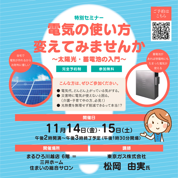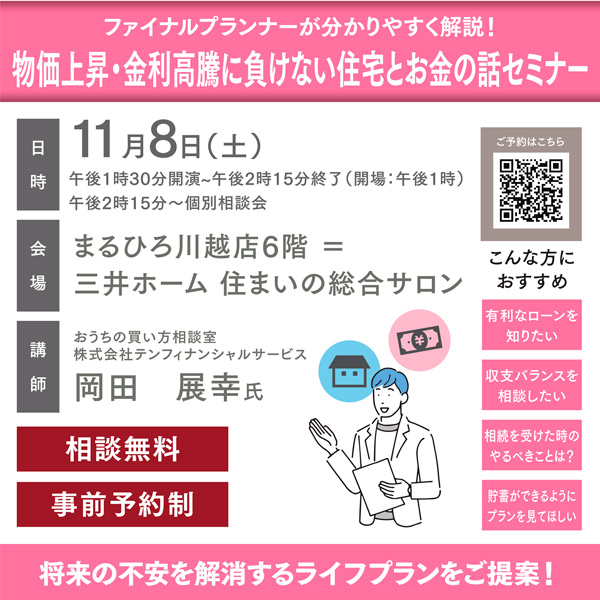 〈〈 住まいの総合サロン・川越 11月"お役立ちセミナー"開催のご案内〉〉