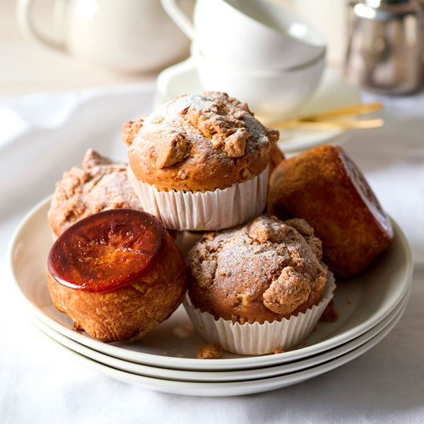 紅茶と相性の良いりんごとラムレーズンをマフィン生地に合わせて焼き上げました。トッピングのシナモンクランブルがアクセント。