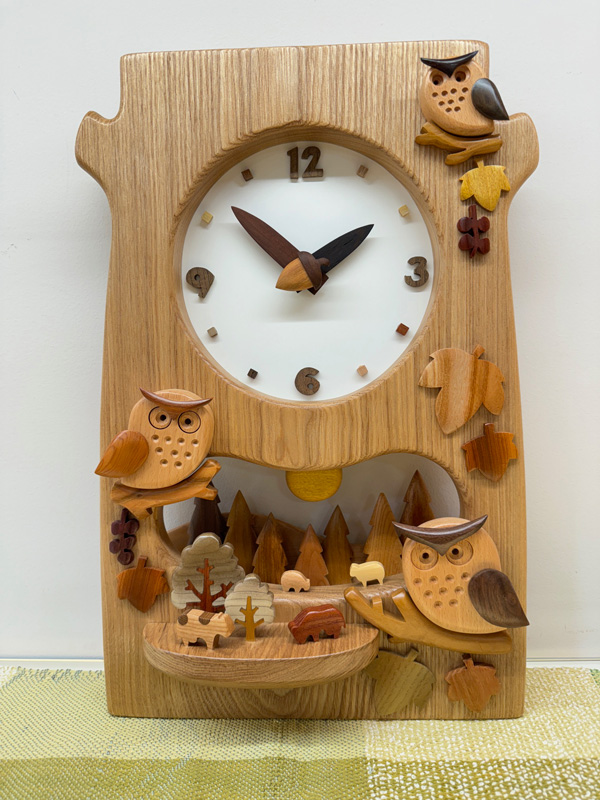 天然木を生かした、愛らしい振り子時計やクラフト作品を手作りしています。木の温もりと確かな技術が光る一点ものです。