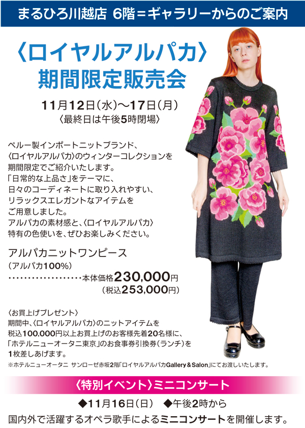 ●2025年11月12日(水)~2025年11月16日(日)まで ●2階=〈イビサ〉 開催店舗: 川越店