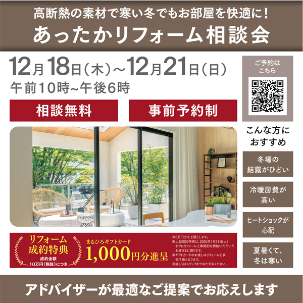 ◎高断熱の素材で寒い冬でもお部屋を快適に!あったかリフォーム相談会