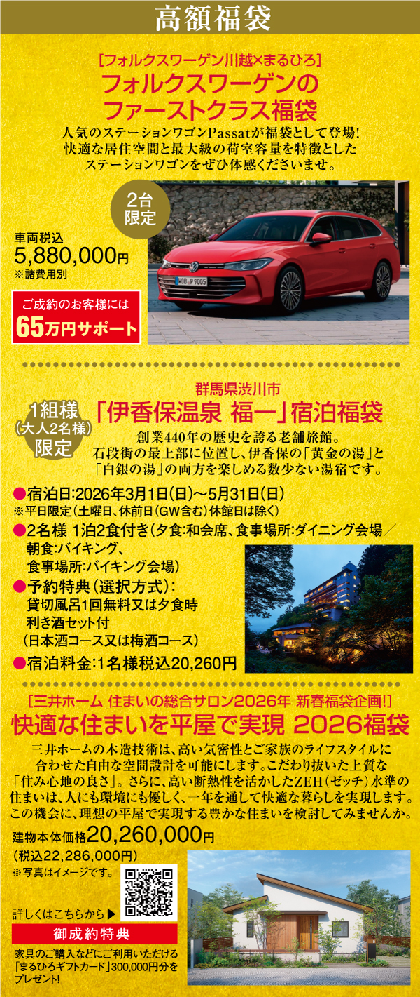 ・当選状にクレイン伊奈の連絡先を明記しておりますので、「丸広百貨店体験福袋のご予約」とお伝えいただき、ご希望日をクレイン伊奈にお伝えください。