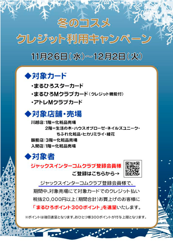 ●1階=化粧品/2階=ビューティープラス・生活の木 ※花蔵は除く 開催店舗: 川越店