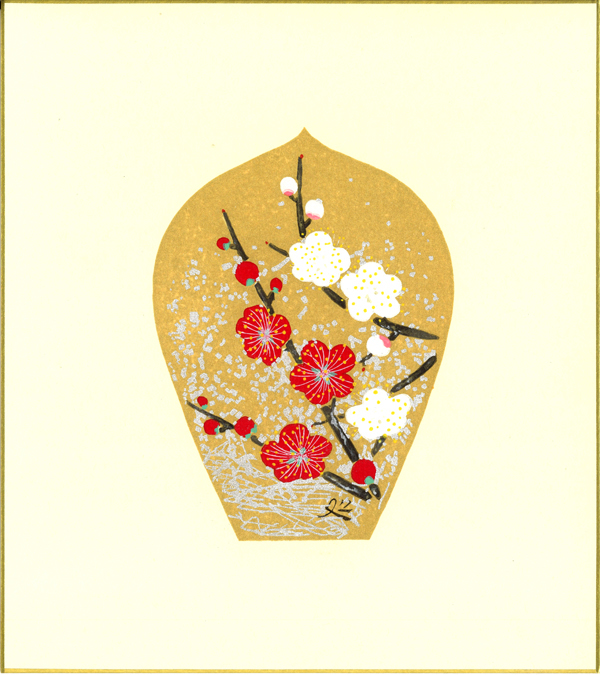 加山又造「紅白梅」木版画色紙、26.0×23.5cm、1986年...本体価格200,000円(税込220,000円)