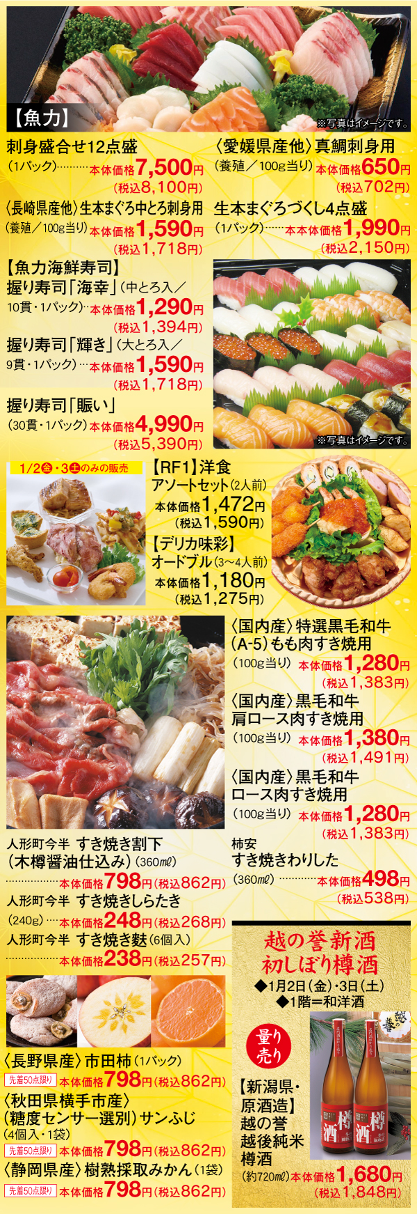 ●2026年1月2日(金)~2026年1月5日(月)まで●1階=食料品※写真はイメージです。※数に限りがございます。