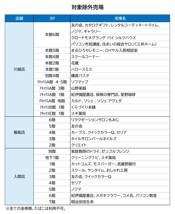 ◎対象店舗:川越店、飯能店、入間店 *一部対象除外売場、商品がございます。