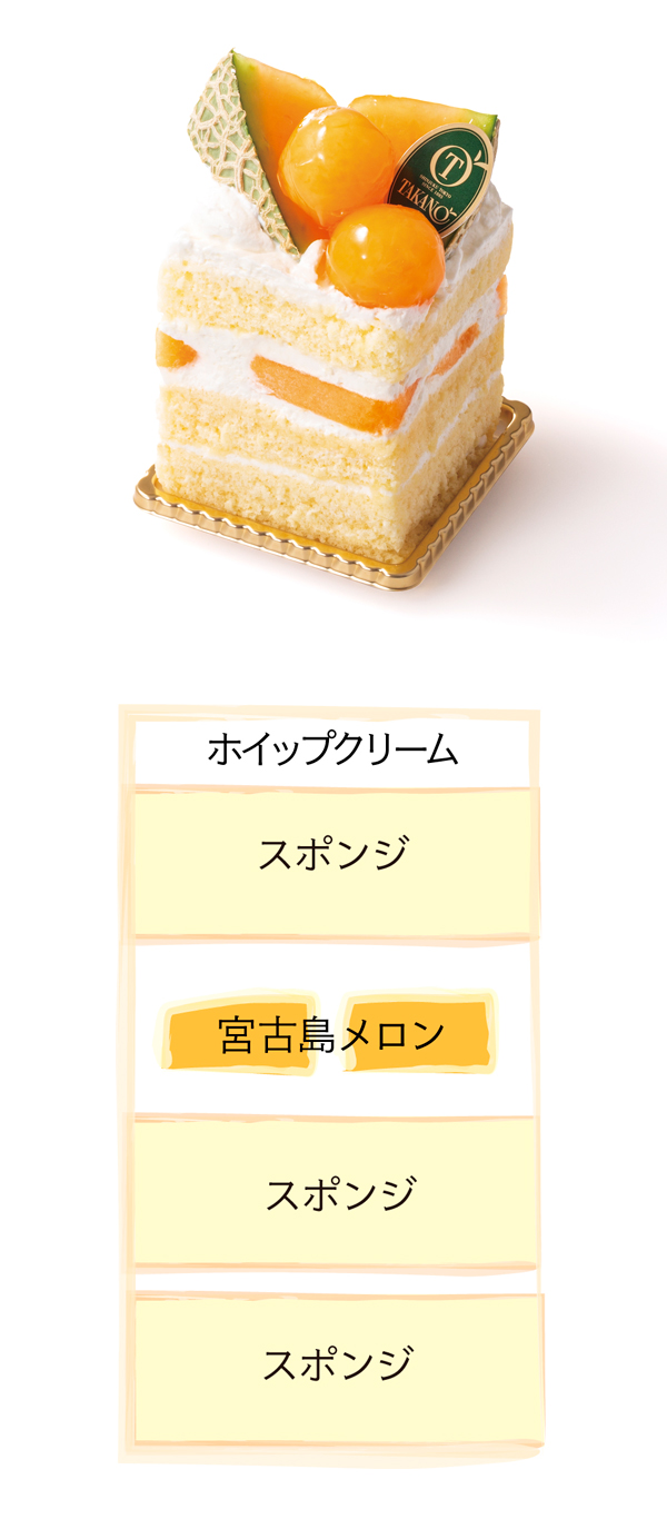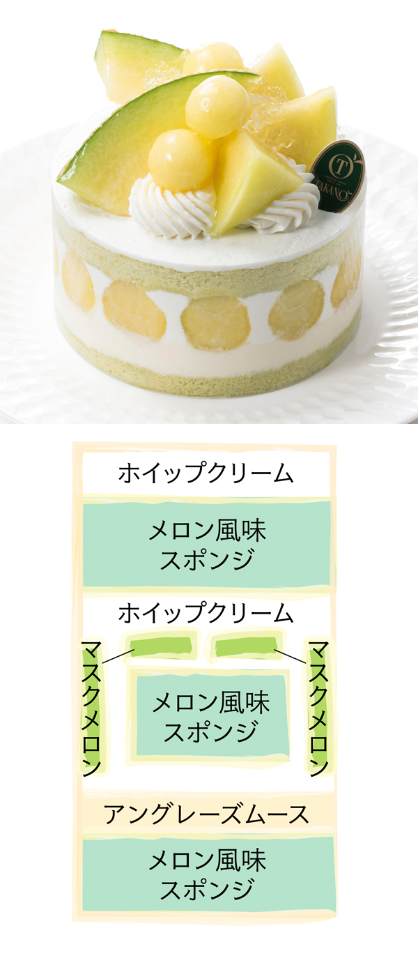 マスクメロンで仕立てたデコレーションケーキ。
