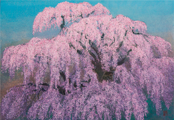 土佐典具帖和紙を基調に桜のある日本の心をテーマに、和紙でなければ表現しえない風合いを生かして創作した作品は現代アート界で絶賛され、世界的にも高い評価を受けております。「滝桜」M15....本体価格350,000円(税込385,000円)