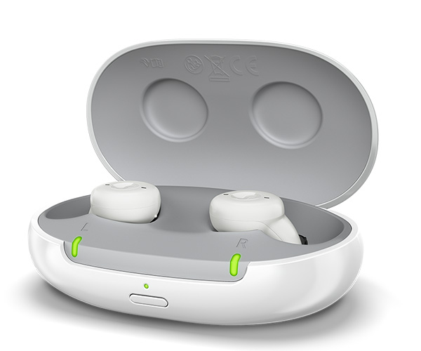 ワイヤレスイヤフォンのようなスタイリッシュな充電式補聴器