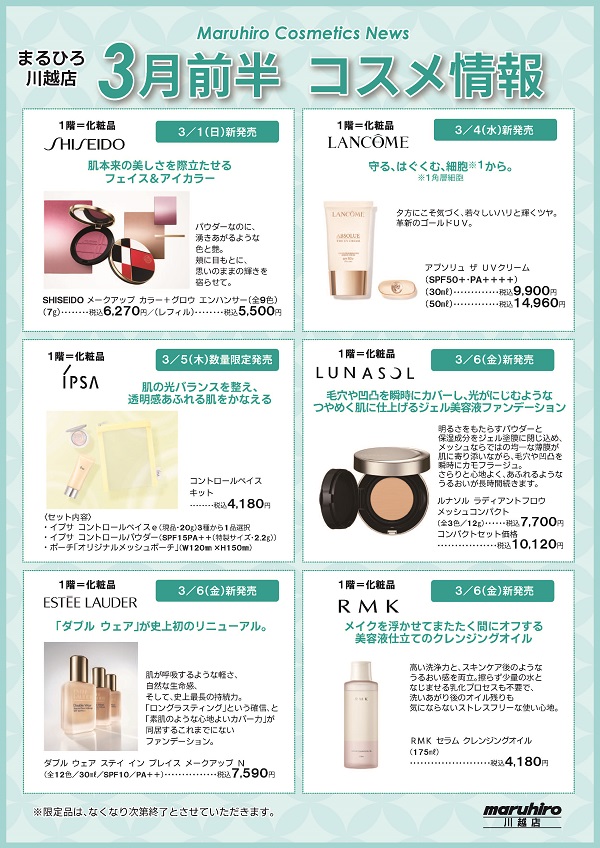 ●2026年2月27日(金)~2026年3月2日(月)まで ●1階=化粧品売場/5階=特設会場 開催店舗: 川越店