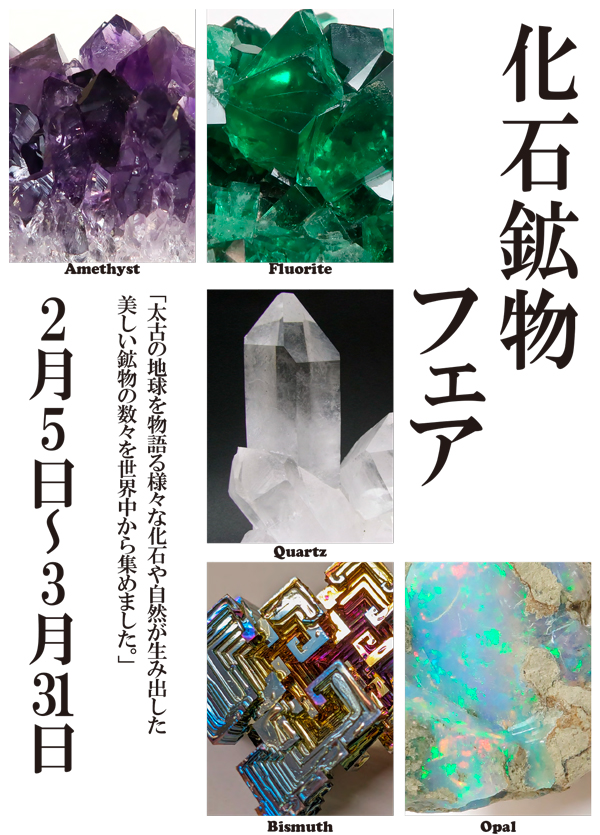 世界各地より集められた太古の生物「化石」と、美しい鉱物結晶群をお楽しみくださいませ。
