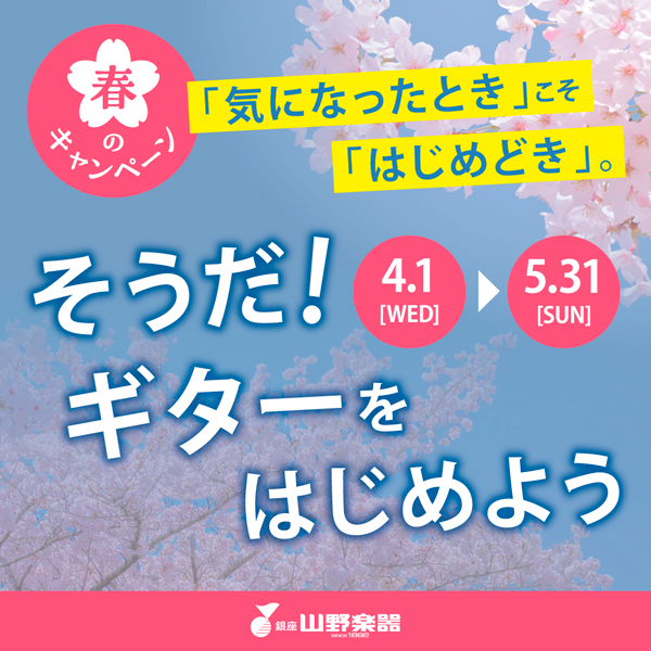 ●2026年5月31日(日)まで●6階=〈山野楽器〉この春、ギターにチャレンジしてみませんか?〈山野楽器〉丸広入間店では、ギターをはじめるあなたを応援します!店頭にはビギナーズギターを多数ご用意しております。あなたのギター選びのお手伝いをサポートいたします。「気になったとき」こそ「はじめどき」!音楽教室の無料体験レッスンもご案内できます♫お気軽に店頭でご相談ください。
