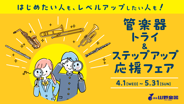 ●2026年5月31日(日)まで●6階=〈山野楽器〉♫「進学して吹奏楽部に入会したい」「そろそろ自分の楽器を持ちたい」「ずっと憧れていた楽器をはじめたい」そんな方は山野楽器へご相談ください!あなたの大切な楽器選びのサポートをさせてください。「はじめたい人」も「レベルアップしたい人」も店頭でお気軽にどうぞ。音楽教室の無料体験レッスンもご案内できます。