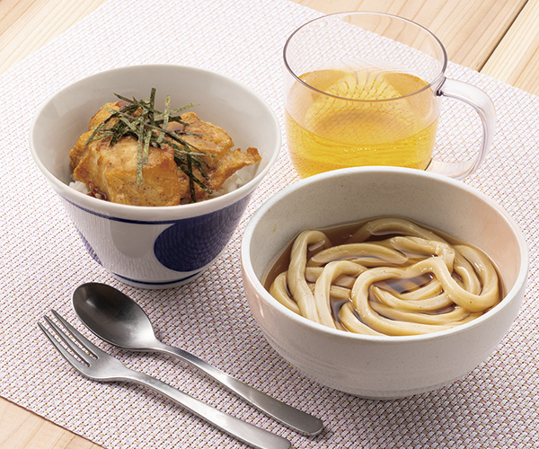 ●別館4階=〈金笛うどん処 春夏秋冬〉お子さまサイズのかけうどんと選べるミニ丼、りんごジュースのセットです。お子さまうどん(お1人様)...税込790円