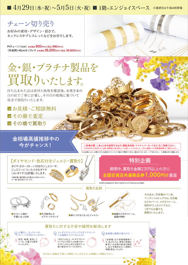 ●2026年4月29日(水・祝)~2026年5月18日(月)まで ●4階=特設会場〈最終日は午後4時閉場〉 ※毎週火曜日は、催場入れ替えの為閉場 開催店舗: 入間店
