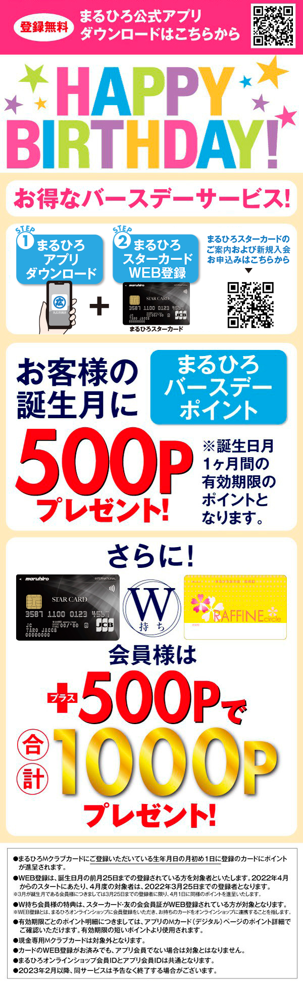 ※2026年3月進呈分より、バースデーポイントの進呈対象は「まるひろスターカード」のみとなります。